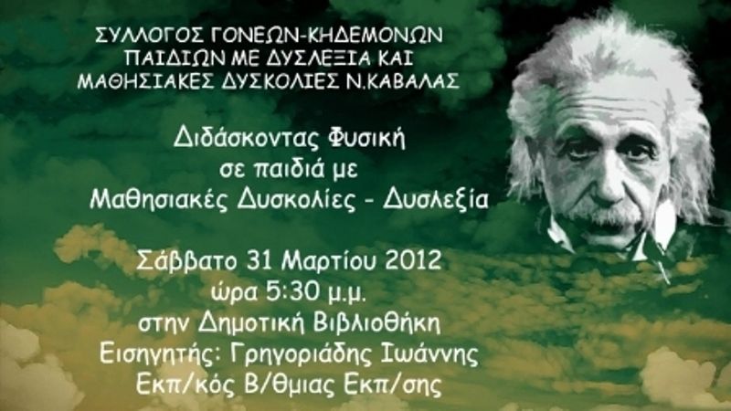 Ο Σύλλογος Γονέων και Κηδεμόνων Παιδιών με Δυσλεξία και Μαθησιακές Δυσκολίες Ν. Καβάλας σας προσκαλεί στην ημερίδα με θέμα